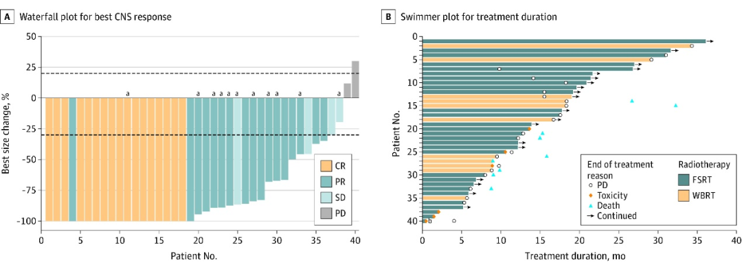 图9.TBCRC 022研究队列4的最佳中枢神经系统疗效的瀑布图