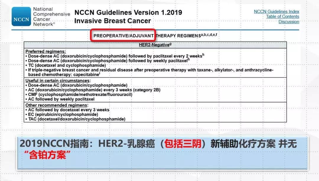 需要注意的是CREAT-X研究其新辅助方案主要是蒽环、紫杉方案,也就是说含蒽环紫杉方案新辅助化疗后未达pCR,用卡培他滨强化可以获益,如果一个BRCA突变的TNBC我们采用了含铂方案未达pCR,后续是否还要用卡培他滨强化?这些问题没有回答,加上前面关键的Ⅲ期临床研究结果未出,TNBC新辅助化疗基于BRCA突变选择含铂方案就应慎重。今年ASCO会议TBCRC030数据公布以后,这个问题更应该深入讨论与反思。
