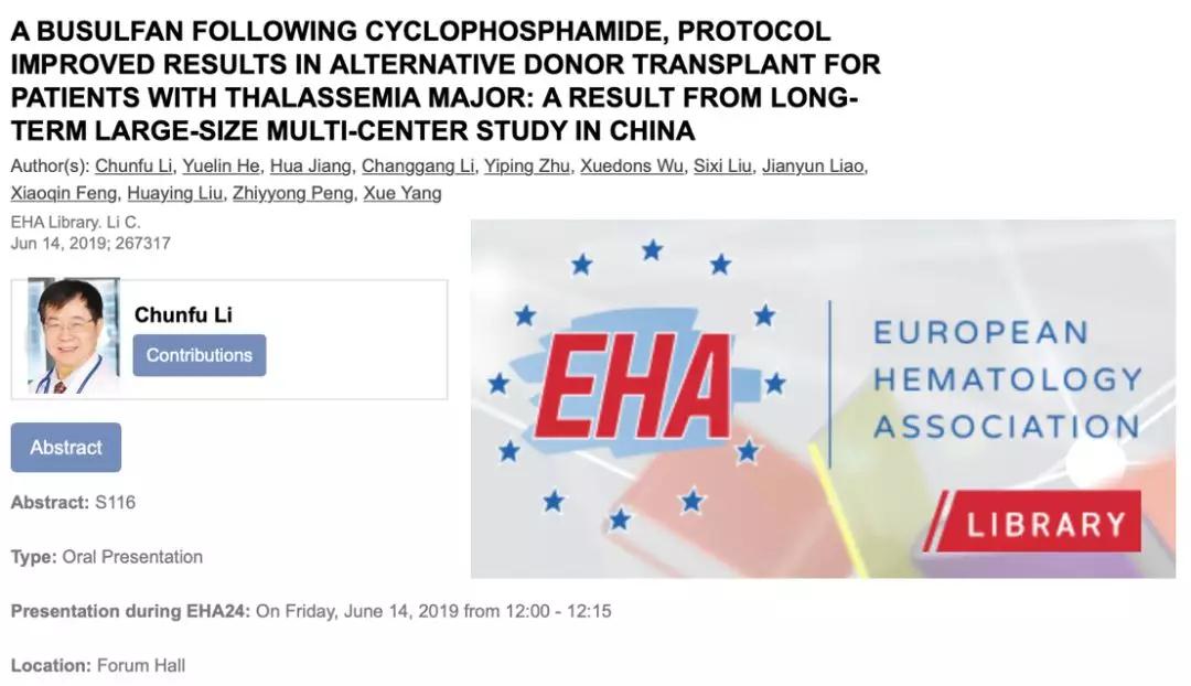 EHA 2019中国之声︱李春富教授:“NF-08-TM方案”可将重型地中海贫血患者的移植疗效提高至90%以上