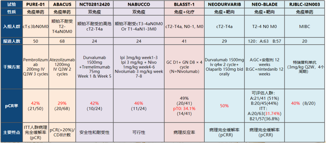 对于区域淋巴结转移(cN1~3)患者,已有研究证实,新辅助和辅助化疗+根治性切除的预后显著优于单纯手术或单纯化疗(5年OS率:31%、26%、19%、14%)[1]。近年来,国内外有不少尿路上皮癌新辅助免疫治疗的探索。