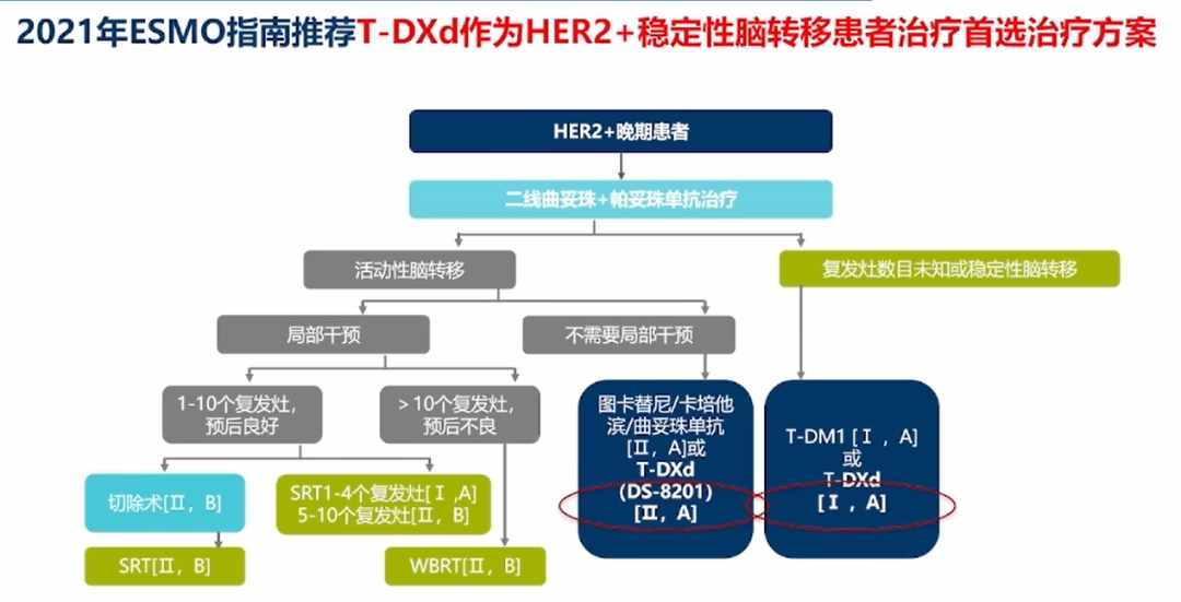 庞丹梅教授:T-DXd是国际上各大指南推荐的二线标准治疗方案,考虑到T-DXd在我国的可及性,CSCO BC指南目前将其作为Ⅱ级推荐(1A类证据)。