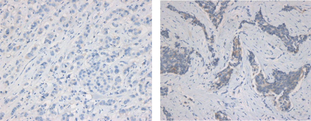 △HER2-0和HER2低表达乳腺癌的代表性IHC图像