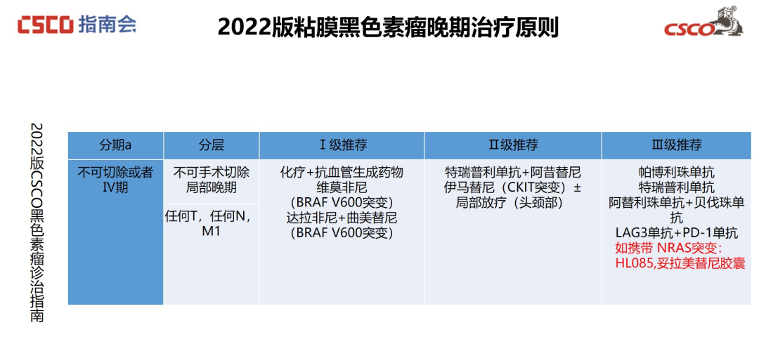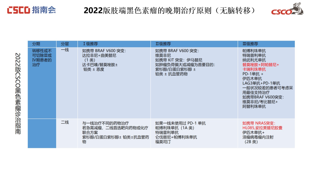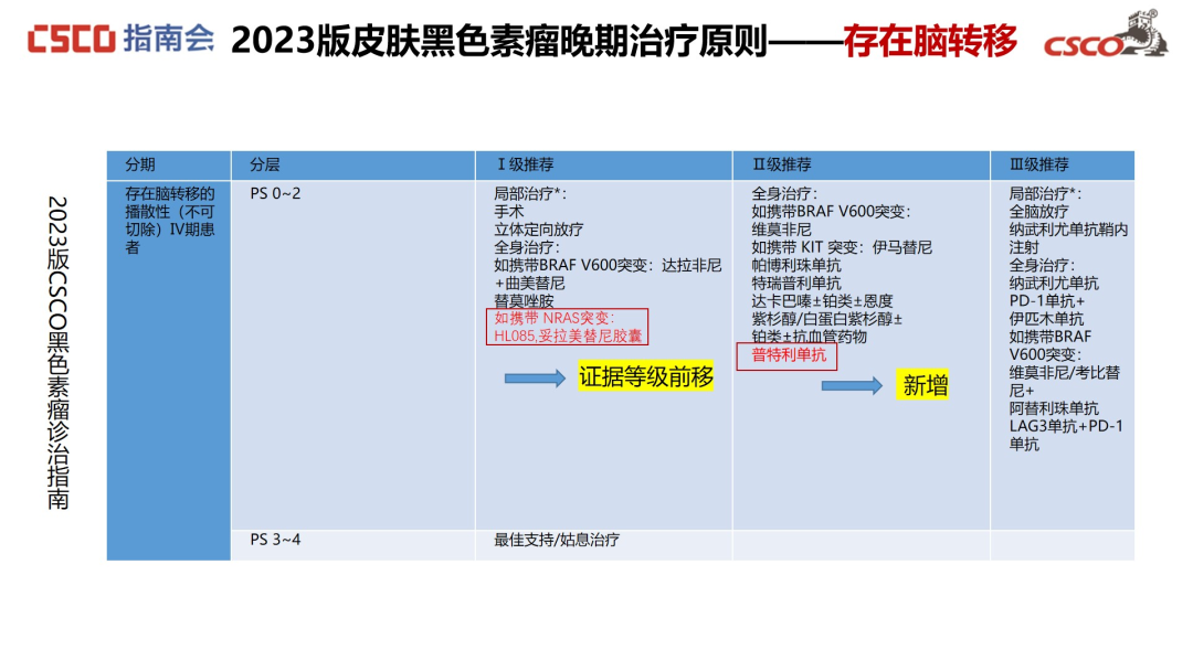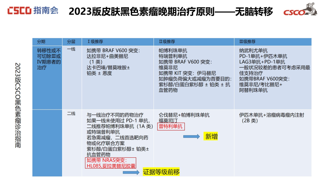 2023版CSCO黑色素瘤诊疗指南晚期治疗更新要点
