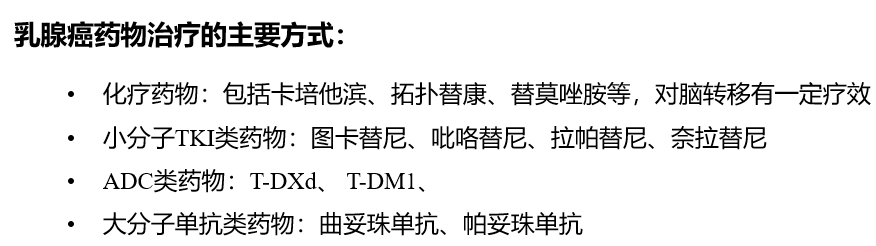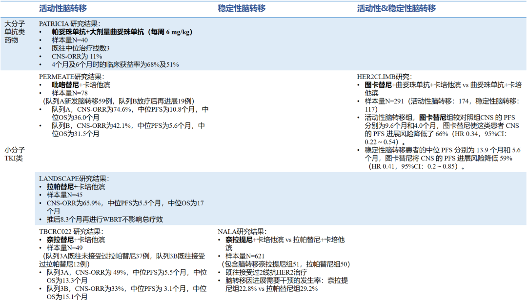 针对HER2+乳腺癌脑转移的药物治疗,小分子TKI类、ADC类、大分子单抗类药物等均显示出对脑转移患者整体生存的改善。